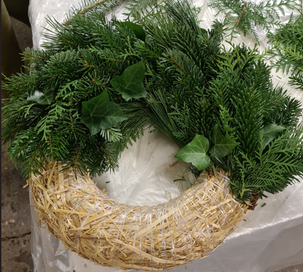 "Weihnachten naht und wie jedes Jahr ist es bei mir Tradition den Adventskranz selbst herzustellen. Gemeinsam mit einem heißen Tee und ein paar Keksen kreieren wir einen Kranz ganz nach unserem Geschmack. Dabei wird der Rohling aus Stroh mit verschiedenen Zweigen bestückt. Bei den Zweigen lasse ich mich gerne von der Natur inspirieren und nutze verschiedene Materialien. Gerade durch die Vielfalt der Grüntöne von der klassischen Tanne, Kiefer über Efeu bis hin zu Buchsbaum wirkt der Adventskranz abwechslungsreich und interessant.
